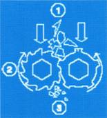 兩個(gè)反向旋轉的軸致使顆粒物在雙軸間被粉碎